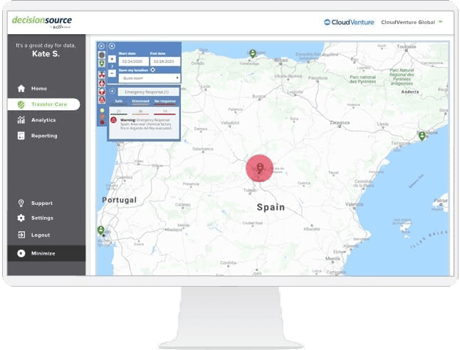 • Automated “I’m Safe” check in functionality for high risk incidents. Responses sync back to your interactive security map in DecisionSource.